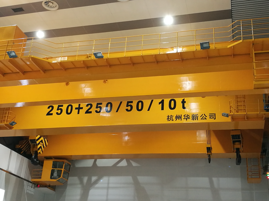 The trolley traveling system of all the bridge cranes and gantry cranes designed and manufactured by HXME are developed based on digesting and absorbing foreign advanced technology, combine with years of technical research and development experience of the relevant Institutes, and in compliance with GB/T3811-2008 "Crane Design Specification" GB/T14405-2011 "Universal Bridge Crane" and other standards, and by referring to relevant foreign crane standards and the mainstream models of bridge crane prevailed by the European Handling Association. It is energy-saving and emission reduction, economical and environment-friendly, especially suitable for underground factories, new factories and hoisting, transporting, moving large tonnage valuable objects in place. The first bridge crane designed by HXME team was the 80/20t bridge crane in Ningbo Beilun Power Plant, which was developed in year 1990 and put into operation in year 1992. The first gantry crane was 2x20t gantry crane supplied to Fuchunjiang Power Plant in year 1994. In the past 30 years of development, it has provided more than 1,000 units of bridge cranes and gantry cranes to many big companies at home and abroad. It is the most advanced and most mature low-clearance trolley structure in the industry in China. The single-trolley bridge crane ever manufactured by HXME is with maximum rated lifting weight of 800t, and the double-trolley bridge crane is with maximum rated lifting weight of 500t+500t. HXME has the design and manufacturing capacity of 1500t bridge crane; The gantry crane ever manufactured by HXME is with maximum rated lifting weight of 900t shipbuilding gantry crane.